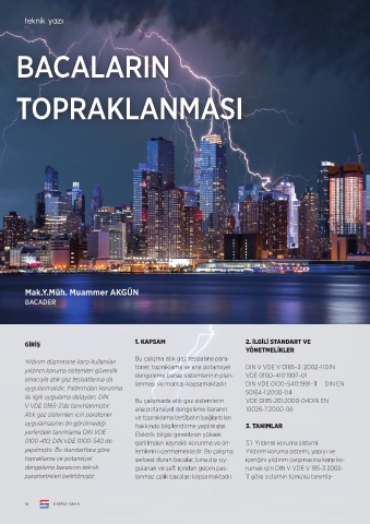 topraklama ve potansiyel serbest duran bacalar, bina dışı uy- içeriğini yıldırım çarpmasına karşı ko-