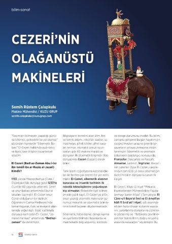dünyaya nam salan El- Cezeri, “za- Sibernetik; haberleşme, denge kurma le göstermiş ve “Tatbikata çevrilme-