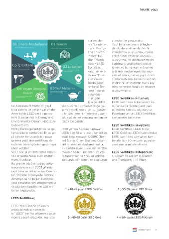 Ve LLSBE’yi (International Initiati- masının nedeni ise enerji ve çev- LEED Sertifikası Kategorileri;