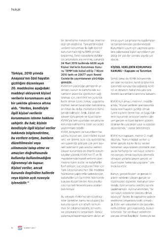 20. maddesine aşağıdaki KVKK’nin yürürlüğe girmesinin ar- işlenmesi konusunda sağladığı kont-