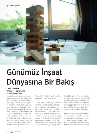 İnşaat dünyasını, sadece beton, de- yöne gittik. Yani bizi rüzgâr ne yöne leştirdiğini söyler. Ama bu ne kadar