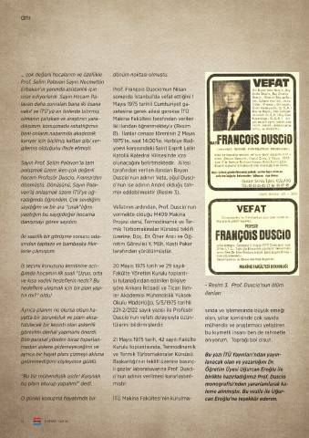 Prof. François Duscio’nun Nisan sonunda İstanbul’da vefat ettiğini 1 Mayıs 1975 tarihli Cumhuriyet